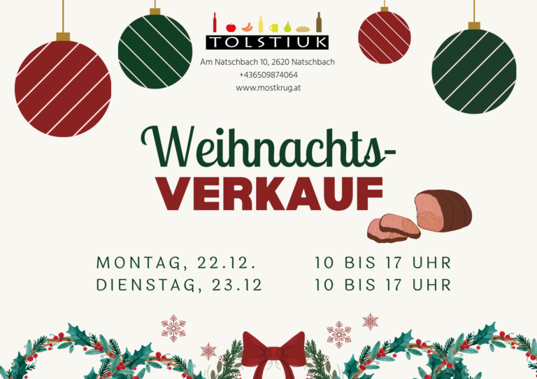Wir freuen uns, Euch bei unserem Weihnachtsverkauf am 22. und 23.12.2025 für die Feiertage versorgen zu dürfen.